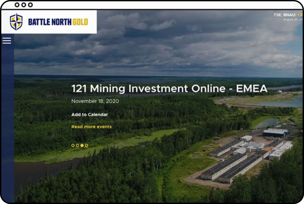 Battle North Gold was a gold mine developer located in Ontario, Canada. The Bateman Gold Project was rebranded as Battle North Gold and required a new website to reflect the new brand. In 2021, they were acquired by Evolution Mining Limited.