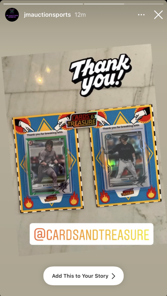 Cards & Treasure created a game for their live interactions. When the host opens the box, two viewers have a chance to steal the card of their opponent.