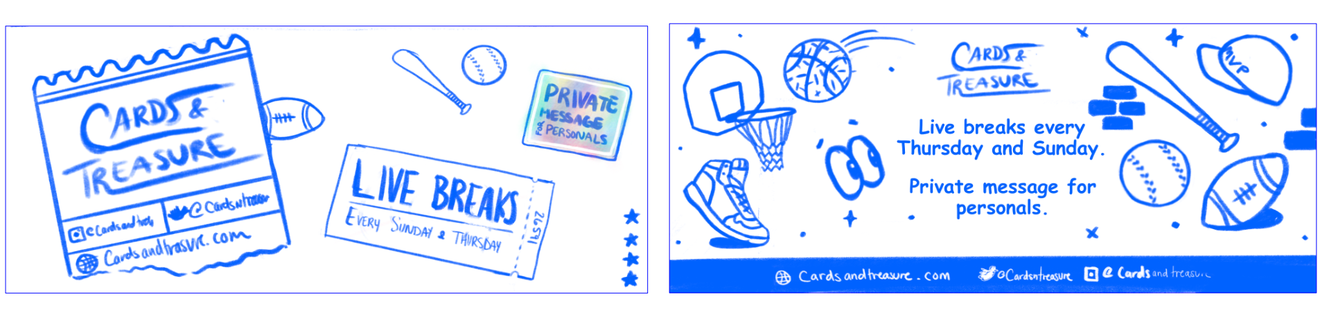 The first concepts I had for the Facebook Group banner image. I wanted to show the different sports the trading cards cover.