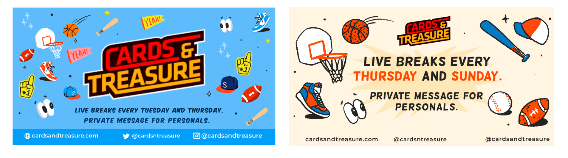 Cards & Treasure needed simple templates for general announcements for the upcoming app, Hobby News, and new break box releases.