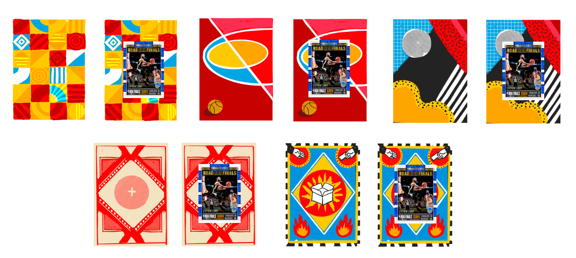 A common theme in the Cards & Treasure moodboard was geometric shapes. I played around with some of shapes for the background. One of the challenges was to make sure the pattern didn’t compete with the trading card.